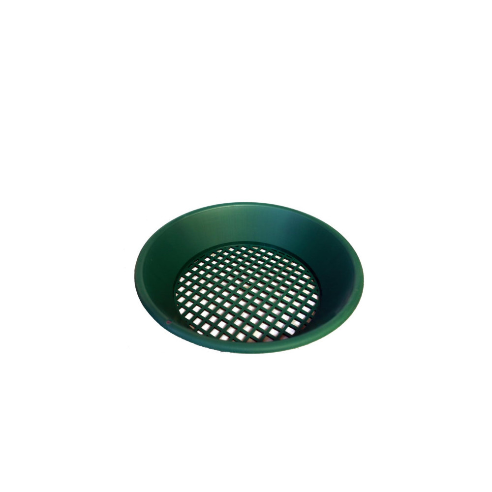 Este tamiz KARMA es robusto y poco voluminoso. Diámetro superior: 33 cm, diámetro inferior: 23.5 cm, malla cuadrada: 1.2 cm