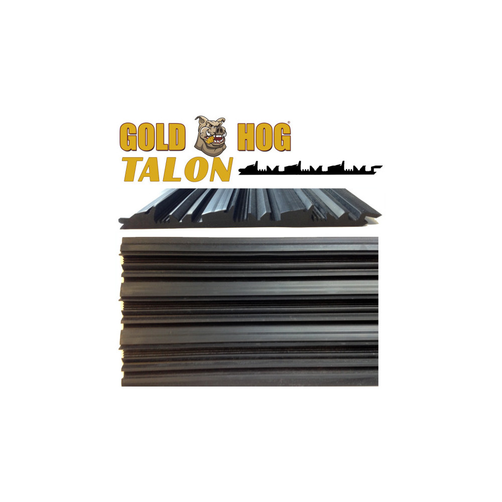 La marca estadounidense Goldhog es la referencia en alfombrillas para rampas de prospección de oro. El Talon es una alfombrilla que se adapta a aguas rápidas y es muy agresiva sin crear turbulencias elevadas. Puede colocarse en cualquier parte de la rampa y capta tanto el oro fino como las grandes escamas, especialmente las alas de moscas.Dimensiones 30x15.5cm. Fácilmente recortable para adaptarse a su rampa.