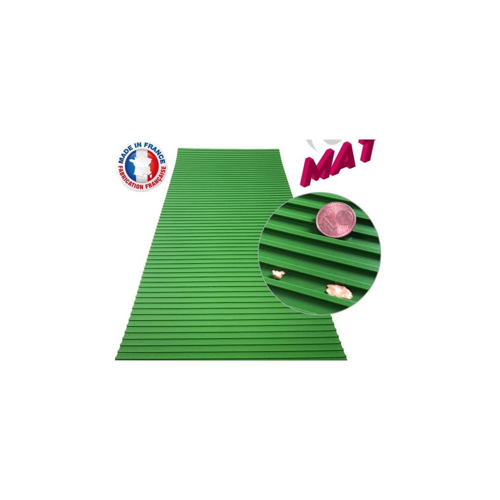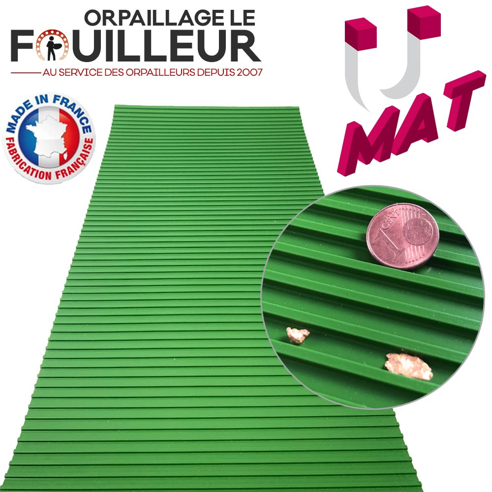Nuevo tapiz especialmente diseñado por la tienda del buscador para Goldline Orpaillage, ha sido creado para ser utilizado como reemplazo del V mat al inicio de la rampa. Su uso es bastante versátil ya que funciona realmente bien también en rampas fuera de corriente. También puede ser utilizado debajo de una rejilla de metal desplegado para las rampas clásicas en reemplazo de la moqueta o del tapiz spaghetti. Es un verdadero tapiz multiusos. Dimensiones 50x25cm y 6mm de grosor - altura de los riffles 2 mm - separación entre los riffles 5 mm, grosor del riffle 2 mm.
