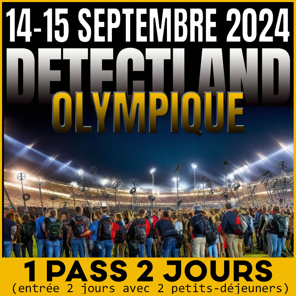 750 PLAZAS DISPONIBLES. Entrada para los 2 días del 14 y 15 de septiembre de 2024 en DETECTLAND OLÍMPICO (desayuno incluido el sábado y el domingo - otras comidas NO INCLUIDAS). Las plazas disponibles para Autocaravanas/Caravanas/Furgonetas adaptadas ya se han vendido todas. La entrada es desmaterializada; su nombre se añade a la lista de entrada del rally; no recibirá un ticket en papel. Entradas nominativas no reembolsables ni intercambiables. Para saber todo sobre el rally (reglamento, premios...), consulte la descripción. No se dará ninguna información sobre el rally por teléfono. El rally se llevará a cabo en Mer (41); como cada año, el lugar exacto solo se comunicará el día anterior (no se dará ninguna otra información sobre el lugar antes). Camping en el lugar posible (sin agua ni electricidad).