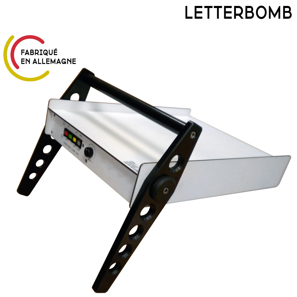 El LETTERBOMB LBD2 es un detector de metales dedicado a la inspección del correo fabricado en Alemania. Detecta metales ferrosos y no ferrosos. Se activa una alarma audio o visual en caso de detección de un objeto metálico como un detonador o circuito electrónico. La potencia se puede ajustar al igual que el modo de detección. El modo dinámico es más rápido, mientras que el modo estático indica con precisión dónde se encuentra el objeto metálico detectado. Es una solución mucho más económica que un escáner de rayos X. Funciona con corriente eléctrica; en caso de corte de energía, una batería toma el relevo ofreciendo una autonomía de 12h.