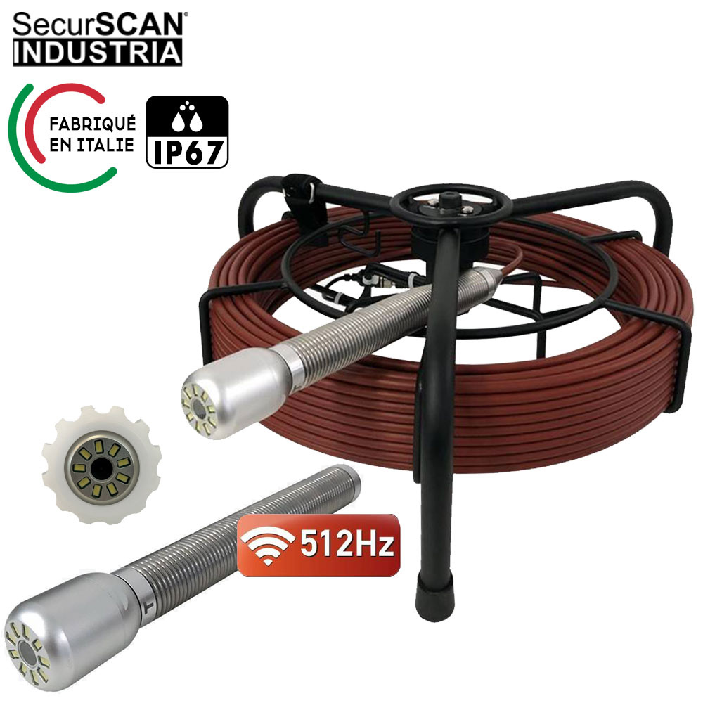 Fabricada en Italia por Securscan, esta cámara de empuje de inspección por video está equipada con un emisor de 512hz compatible con los principales localizadores del mercado (Cscope, Radiodetection...). Le permite localizar fugas y en tuberías grandes, canalizaciones, alcantarillas y desagües gracias a su carrete de 60m. Es compatible con los sistemas de inspección por video VPI. La cámara de empuje con un objetivo de diámetro de 8mm ofrece un ángulo de 90° y 18 LED para una imagen clara incluso en la oscuridad.