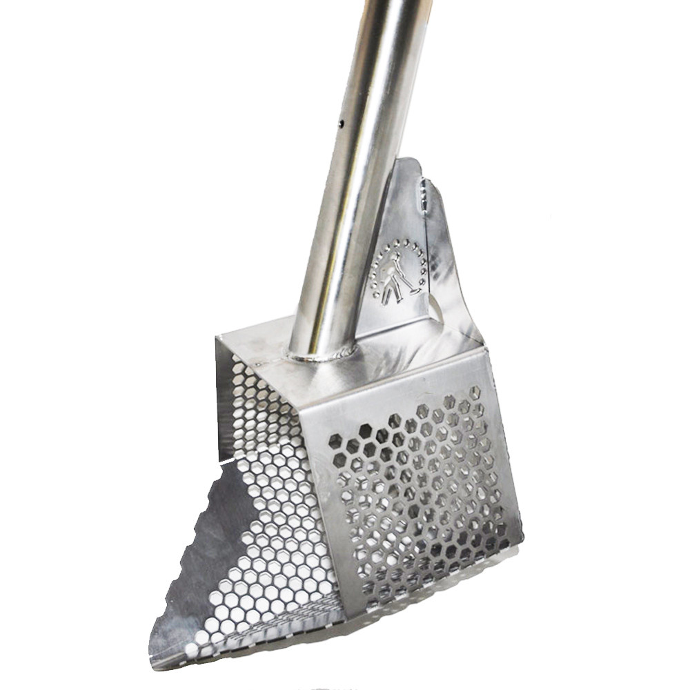Una gamate o extractor de mango permite excavar en la arena o en el lecho de un río para luego tamizar el contenido cuando utilizas un detector de metales en el agua. Este extractor Silver Scoop es extremadamente robusto en comparación con otros modelos disponibles y permite procesar una gran cantidad de arena/grava por pasada. Su peso es de 1,9 kg, y su tamiz mide 21x21 cm. El mango no está incluido. Asa Raptor opcional.