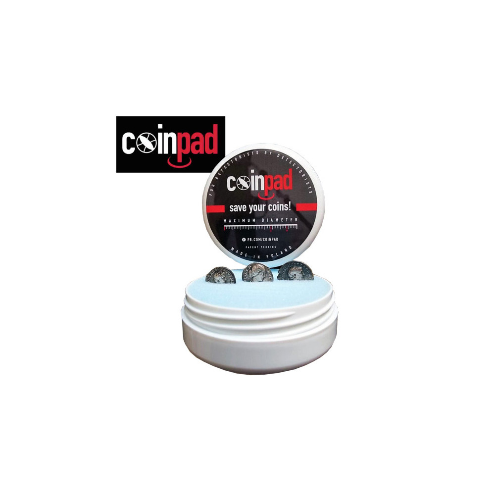 Diseñado por buscadores, el coinpad es un accesorio práctico que te permite almacenar y proteger tus monedas encontradas en el terreno en un estuche de espuma. Una vez insertada, tu moneda no se mueve y no se desmorona. La espuma es lavable. Esta versión XL te permite alojar monedas de diámetro de hasta 40 mm. Diámetro 78 mm