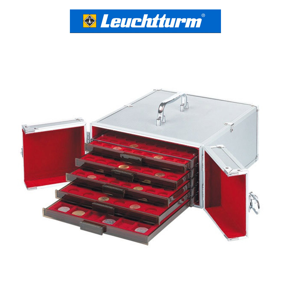 Los cajones/medallones LEUCHTURM son la referencia para coleccionistas y numismáticos. Esta empresa alemana fundada en 1917 ofrece productos de calidad fabricados en Europa; nada que ver con los accesorios numismáticos de mala calidad que a veces se encuentran en Internet o en los supermercados. Por ejemplo, en una cajonera LEUCHTURM de alta gama, las monedas no vuelcan...