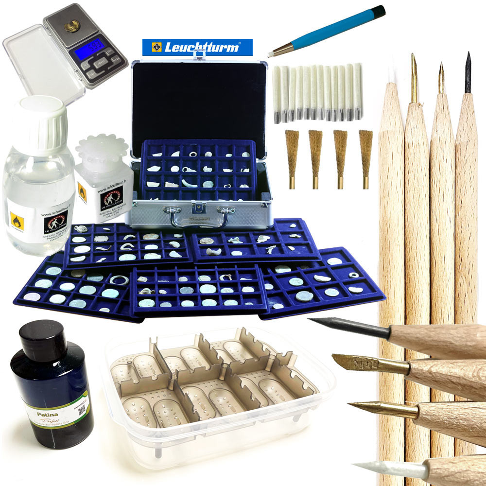 Este Pack 3 incluye todo lo necesario para limpiar, proteger y almacenar tus hallazgos: